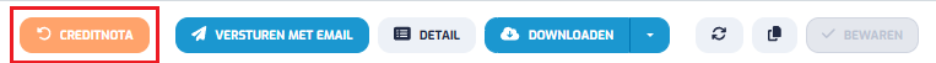Om een creditnota aan te maken op basis van een factuur, opent u de betreffende factuur en klikt u bovenaan op de knop CREDITNOTA. Deze bevindt zich naast de knop Versturen. ![]()