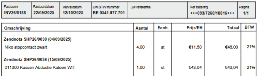 - . De factuurlijnen uit de geselecteerde zendnota(’s) worden automatisch toegevoegd aan de factuur.