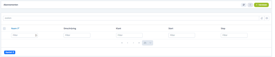 - Klik op de groene “+ TOEVOEGEN”-knop om een nieuw abonnement aan te maken