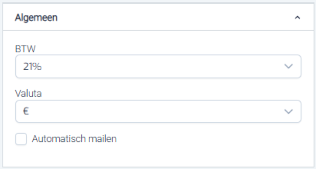 Let op: als u wil dat de facturen effectief automatisch worden uitgestuurd dan moet u de checkbox “Automatisch mailen” aanzetten in het Algemeen paneel onder de “volgende factuurdata”.