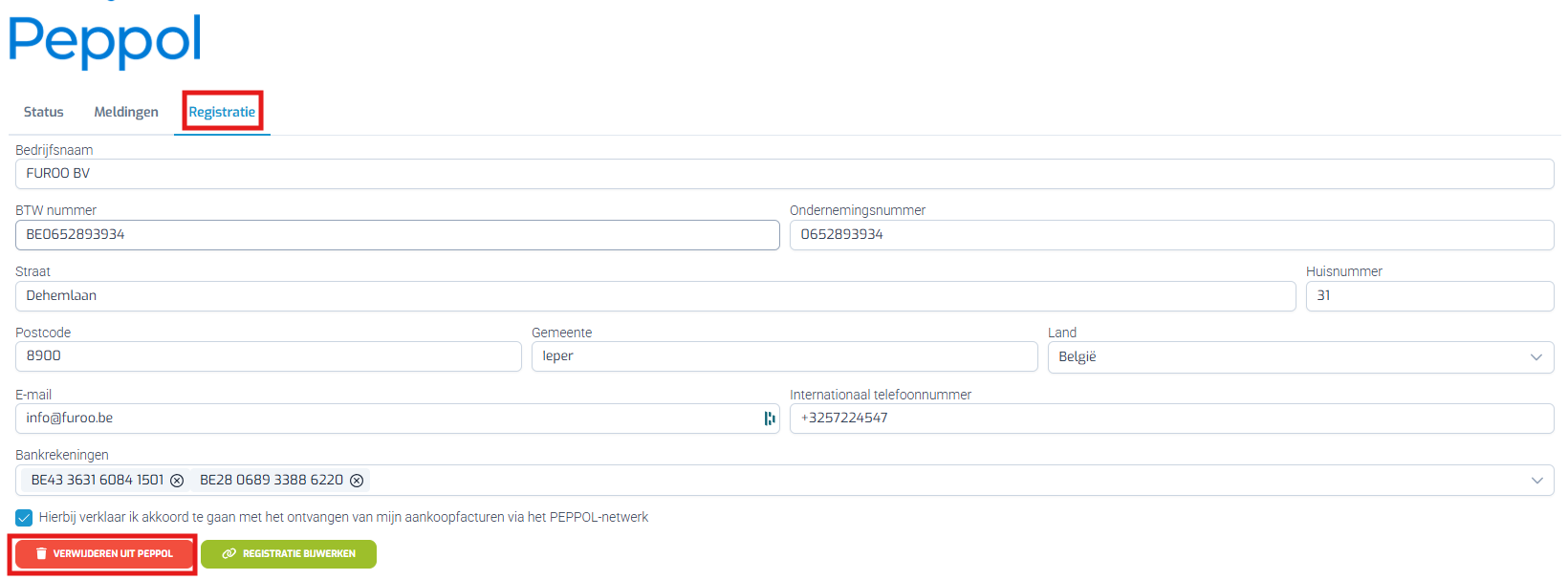 Mocht je beslissen om uw facturen niet langer in FUROO te ontvangen dan kan je jouw registratie verwijderen uit FUROO en nadien bij een ander Acces Point registreren.