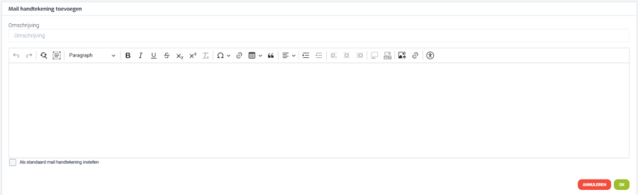 - U kunt één handtekening als standaard instellen. Deze wordt dan automatisch toegevoegd aan elke e-mail die u vanuit Furoo verstuurt.