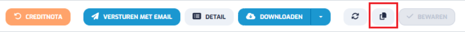 Een verkoopfactuur dupliceren doet u door de factuur die u wilt kopiëren te openen en op de knop Dupliceer te klikken. Deze knop vindt u rechtsboven, tussen het Ververs-icoon en de knop Bewaren.