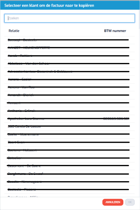 Vervolgens kiest u de klant waarvoor u de kopie wilt aanmaken en klikt u op OK.