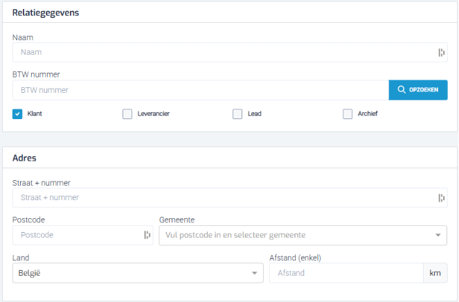 - Stel indien gewenst de afstand in tussen uw bedrijf en de locatie van de relatie.