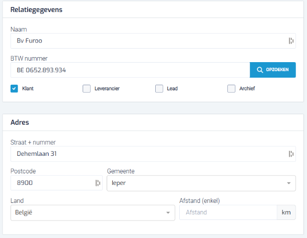 Dit bepaalt ook welke documenten er kunnen aangemaakt worden voor de desbetreffende relatie. Zo kan er voor een lead enkel een offerte worden aangemaakt of kan je voor leveranciers geen verkoopdocumenten maken.