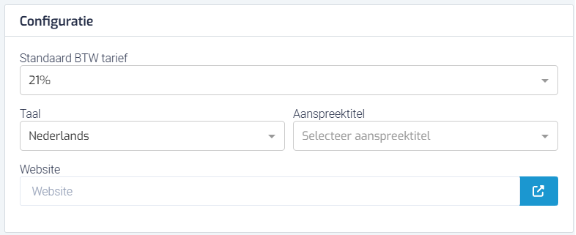- het standaard BTW-tarief en de taal instellen (worden automatisch toegepast op documenten voor deze klant),