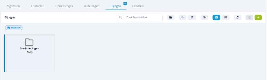 Van zodra een relatie een eerste keer is opgeslagen, verschijnt de tab Bijlagen.