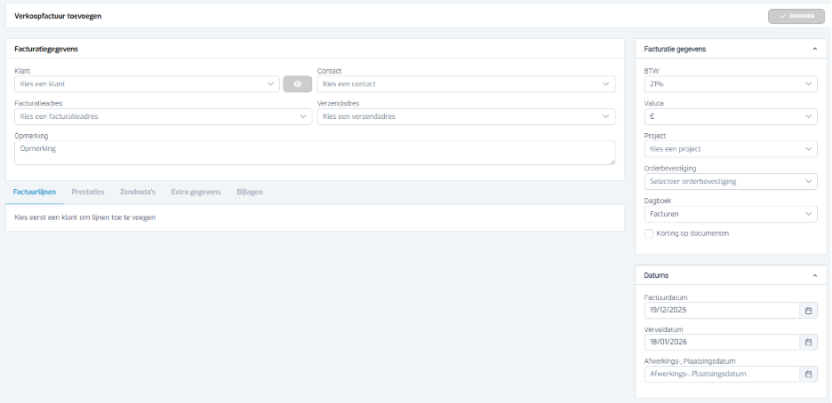 Er wordt een nieuwe, lege factuur geopend.