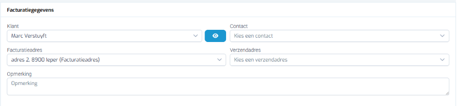 Het facturatieadres wordt automatisch ingevuld op basis van de gegevens in de klantenfiche.