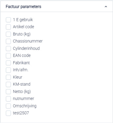 Ook extra parameters die u zelf heeft aangemaakt, kunnen op de factuur worden weergegeven.
