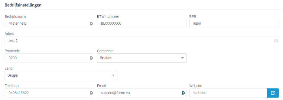 Indien uw bedrijfsgegevens niet correct zijn ingevuld, of indien u deze recent heeft aangepast via de Kruispuntbank van Ondernemingen, dienen deze wijzigingen ook zo snel mogelijk in Furoo te worden doorgevoerd.