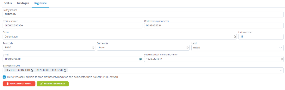 Het is eveneens essentieel dat uw Peppol-registratie de juiste bedrijfsgegevens bevat.