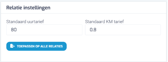 - (Optioneel) Klik op de blauwe knop “Toepassen op alle relaties” om deze tarieven in te stellen voor alle klanten binnen Furoo.