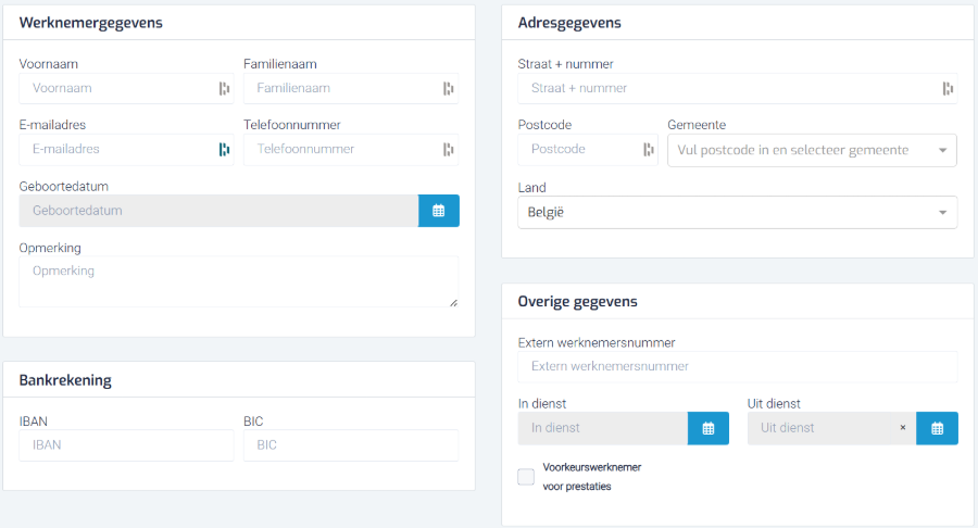 - Vul de werknemersgegevens in.
