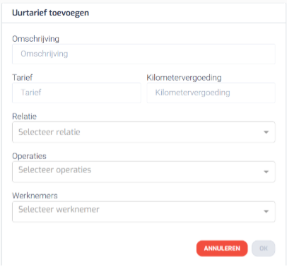 - Stel het uurtarief en de kilometervergoeding in.