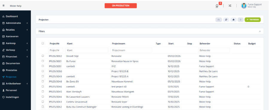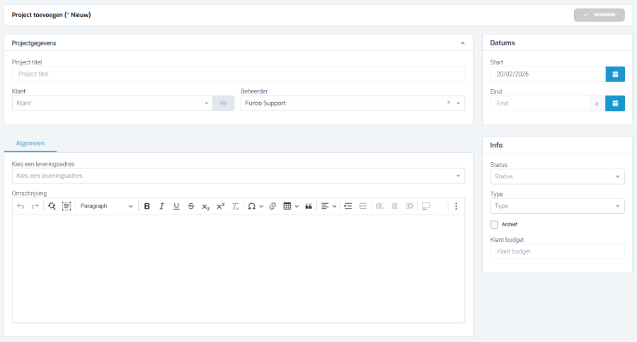 Binnen Furoo kunt u met een project alle kosten en prestaties van een specifieke klant bundelen onder één dossier.