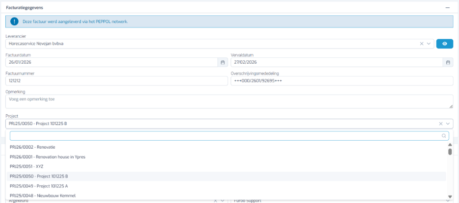 - Alle factuurlijnen binnen het document aan dit project te koppelen.